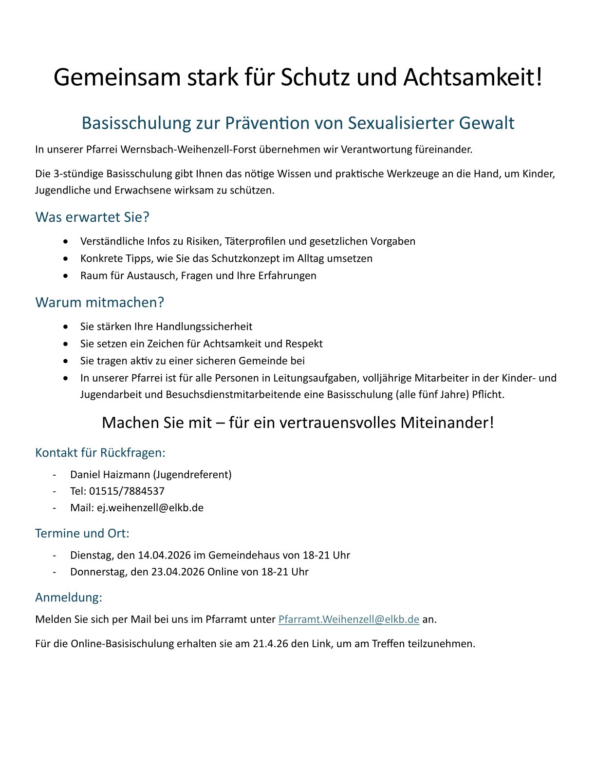 Basisschulung zur Prävention von sexualisierter Gewalt